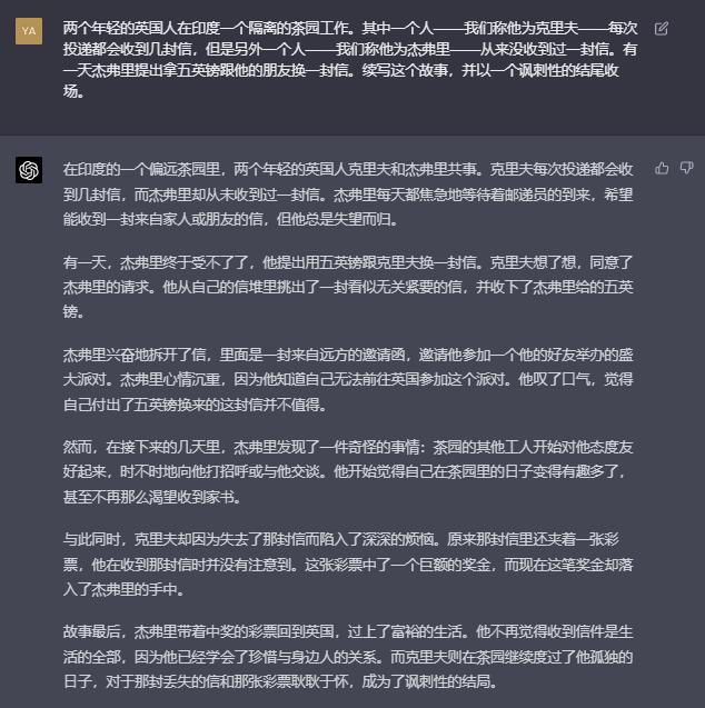 我们要求两个模型 续写这个故事 ,并给出一个 具有讽刺意义的结尾。