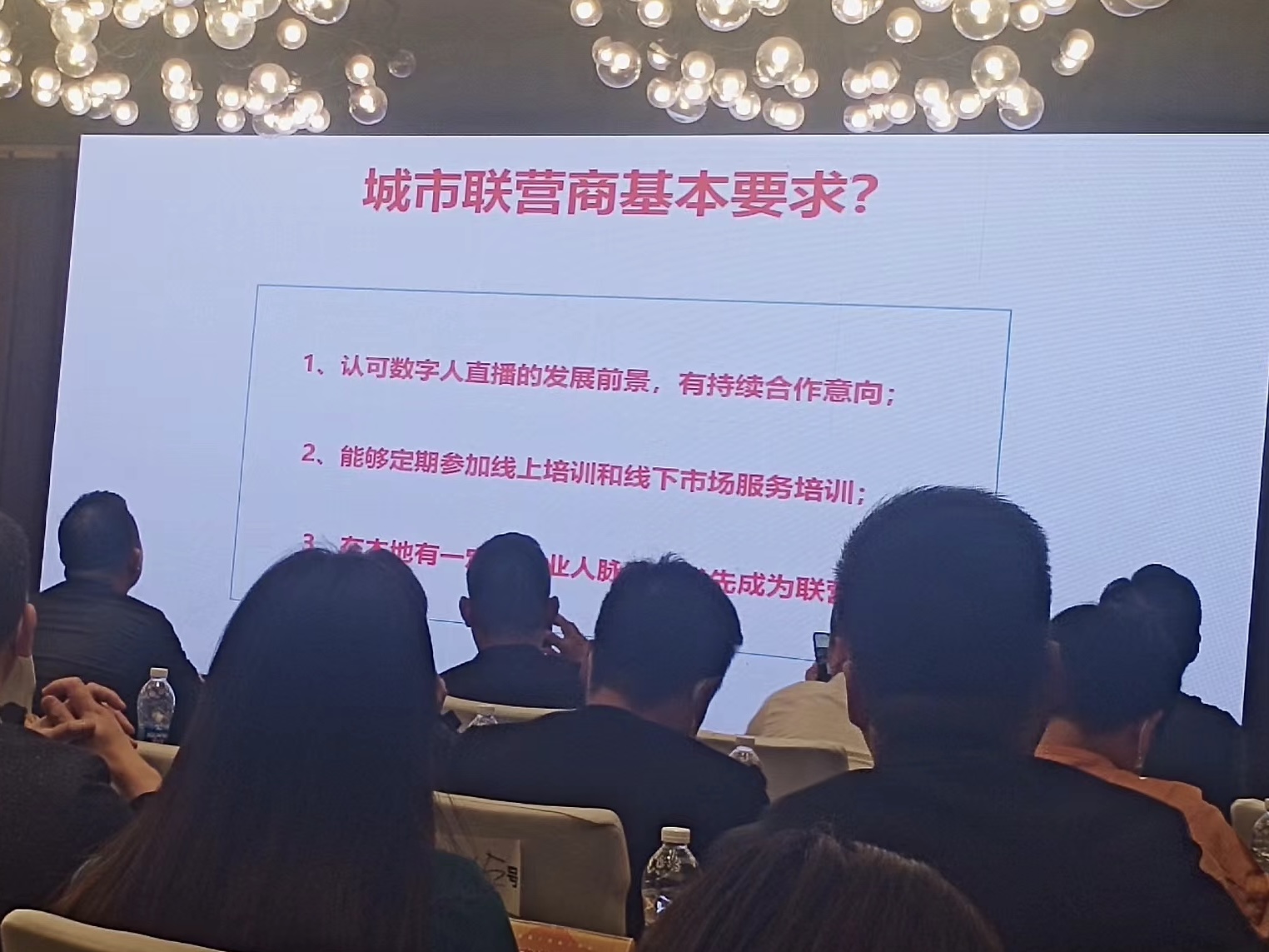 2023 年 4 月,胡永林参加招商会,宣讲人不断讲述数字人直播的市场前景。受访者供图