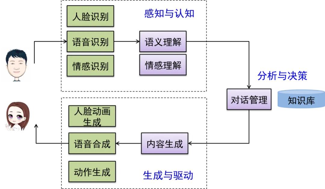 背后的关键是自然语言处理技术, 它涵盖了语音识别、语言理解与生成等多个方面,使得虚拟数字人能够理解并产生自然语言。