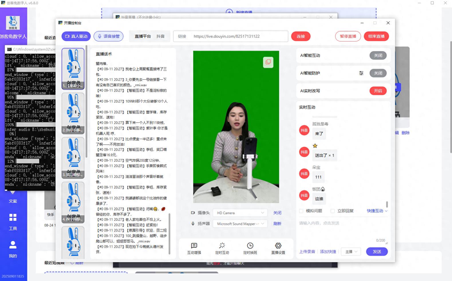 而最引人注目的是“双数字人互动”模式。通过创客兔数字人等尖端技术,可以实现“主播 + 助播”的双数字人配合。主播负责主要讲解,助播则实时互动或回应观众弹幕,这种默契的协作不仅增强了直播的节奏感,还营造了更加生动的互动氛围,效果几乎与真人协作无异。