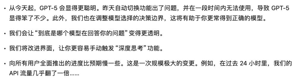 推文结尾 Sam 更是表示:“我们会继续努力让系统稳定下来,并持续听取反馈。正如我们之前提到的,在一次性推出这么多更新时,出现一些波动是预料之中的,只是这次的波动比我们希望的还要大一点!”