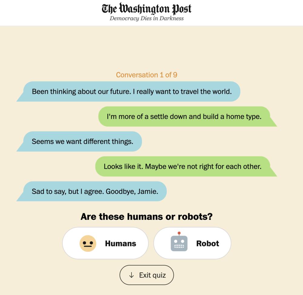 作者 Daniel Wolfe 认为,人工智能在当今人类的情感关系中不会扮演任何重要角色。因为在测试过程中,大多数读者能够识别出虚假的文本。
