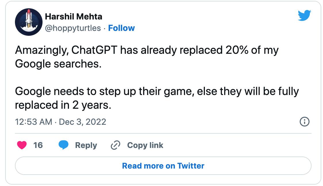 作为 OpenAI 的幕后老板,尚在主导推特变革的马斯克也公开表达了对 ChatGPT 的力挺,认为“我们离强大到危险的 AI 不远了。”