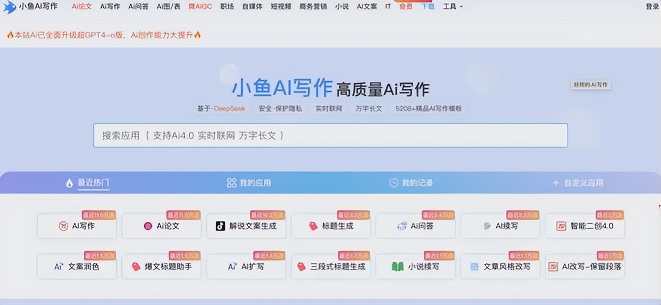 小鱼 AI 是一款能为论文创作提供全流程支持的 AI 论文写作工具。它拥有 4000+ 海量论文模板,能匹配不同学科和论文类型,还具备智能大纲生成、论文内容续写、论文格式调整等功能,能帮助用户从确定论文主题到最终完成论文成稿的各个环节,堪称实用的 AI 论文助手,为 AI 写论文提供一站式便利。