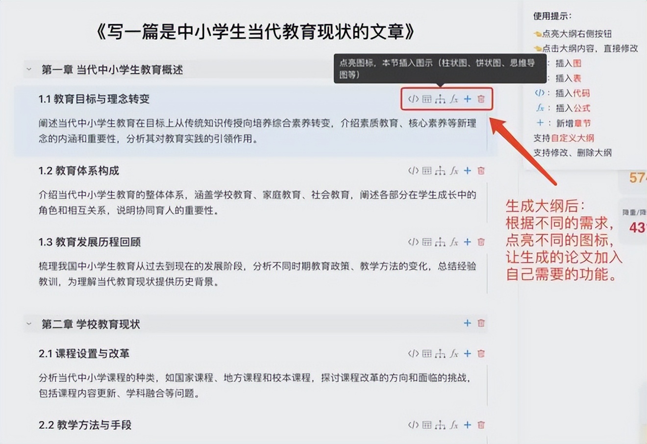 2、简单交互,丰富 AI 论文写作呈现形式: