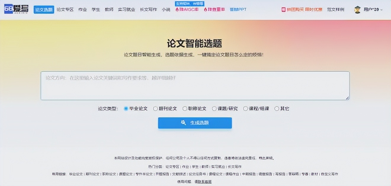 在 9 款 AI 写论文工具测评中,68 爱写 AI 表现亮眼。作为专业 AI 论文写作工具,它覆盖论文类型极全,毕业论文、期刊论文、课程论文,乃至开题报告、文献综述等论文相关材料都能高效应对,真正实现“各种学术论文都能写”,为论文写作者提供切实帮助。