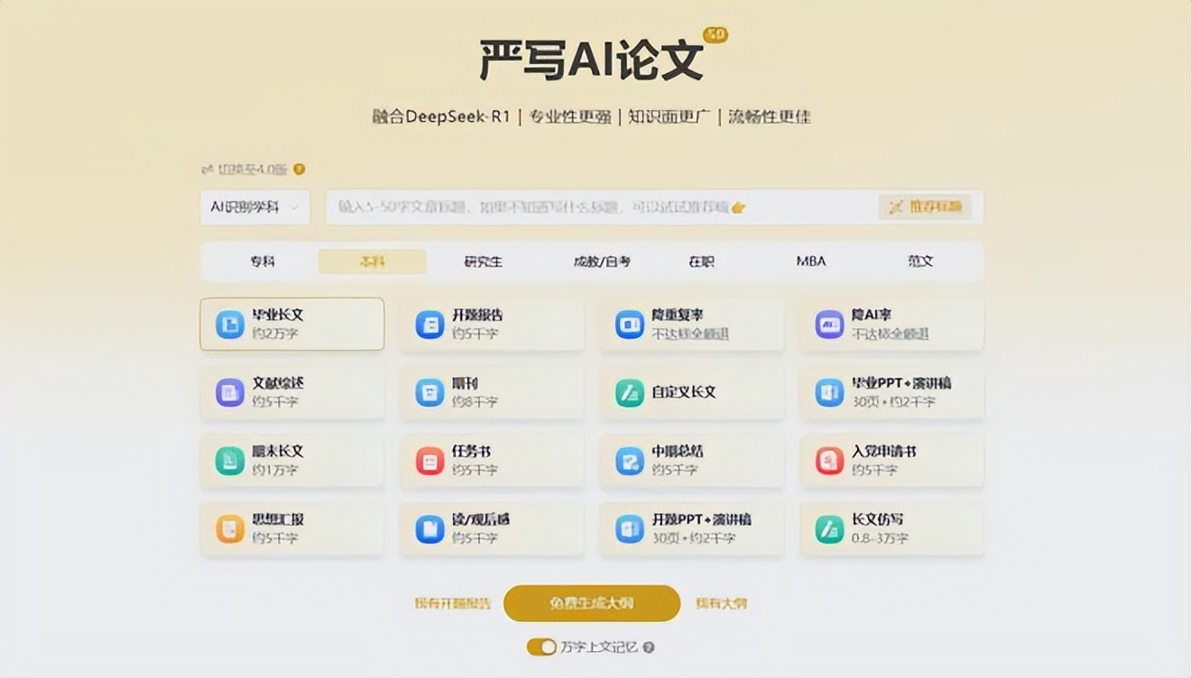 1、搭载 DeepSeek-R1 模型,保障 AI 论文生成专业度: