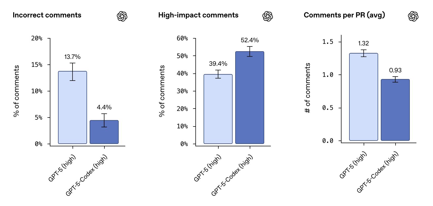 – 在我们的生产代码库测试中,它可以自主运行 长达 35 分钟 ——相比之下,GPT-5 往往过于谨慎,这是一次明显的升级。