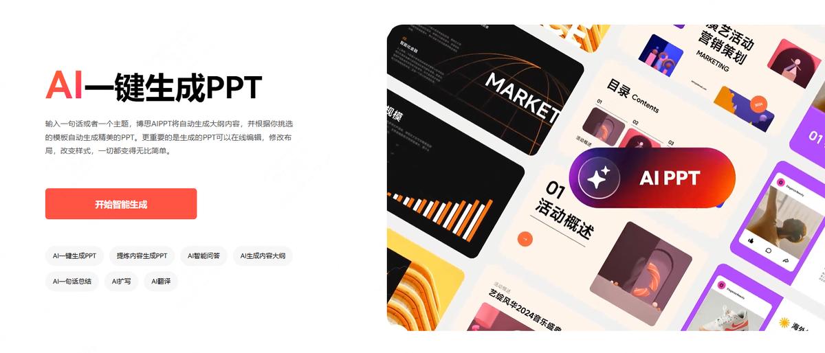 博思 AIPPT 是一款利用人工智能技术实现 PPT 一键生成的工具,颠覆了以往的制作方式。用户只需输入主题,该工具便会自动生成完整的内容框架、匹配优雅的模板,并进行智能排版与美化。