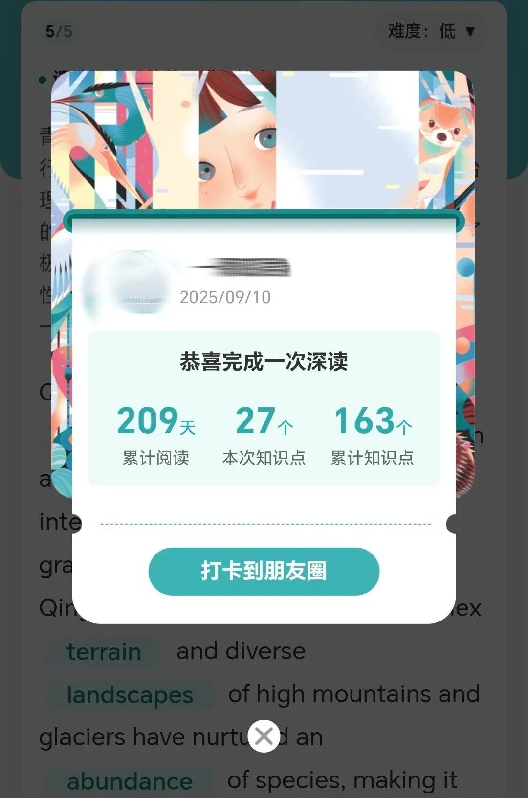 学习结束后,系统会生成美观的打卡图,方便你与朋友分享!