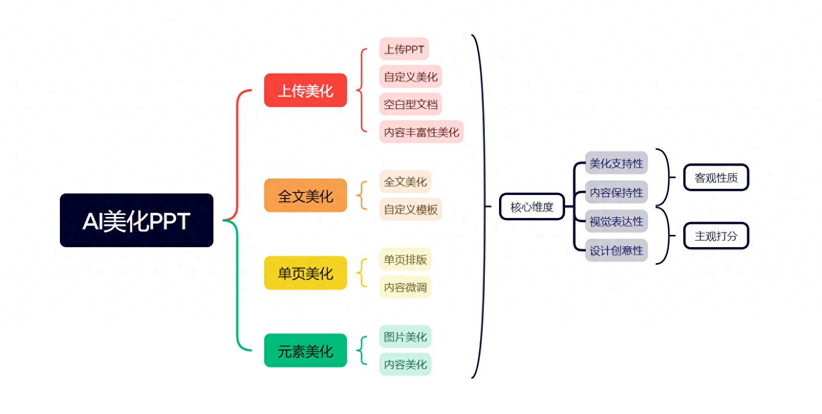 为了进行专业的 PPT 美化测试,我们将采用一致的标准对两款工具进行全面评估,主要考察的维度如下: