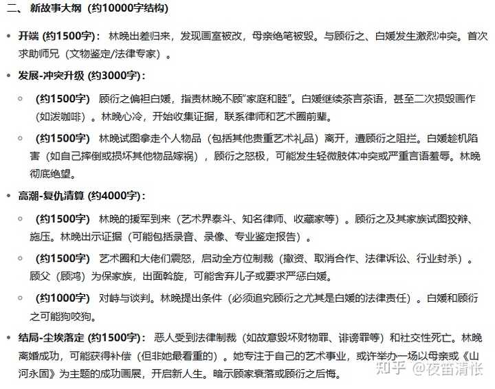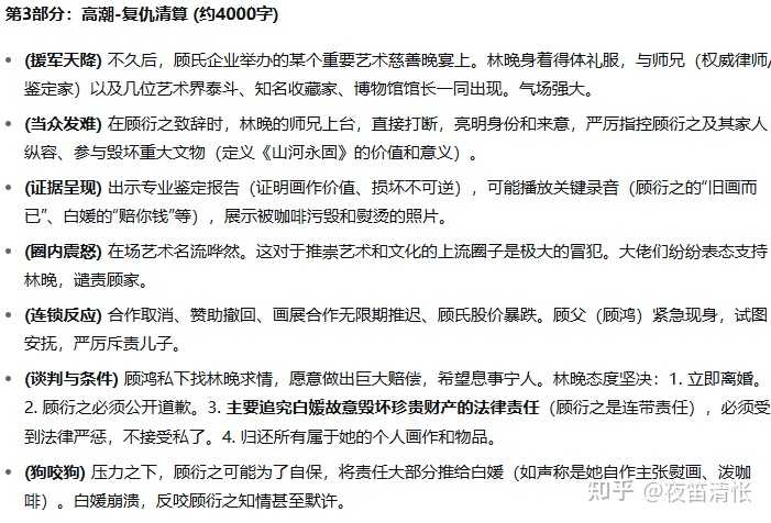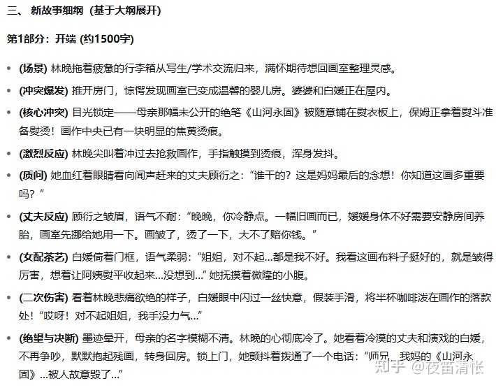 DeepSeek的拆解和还原逻辑十分清晰,这次拆分按照核心事件的安排(起承转合)、新的故事大纲和细纲进行。之所以要求拆解细纲,是因为我在情节安排上缺乏逻辑思维。