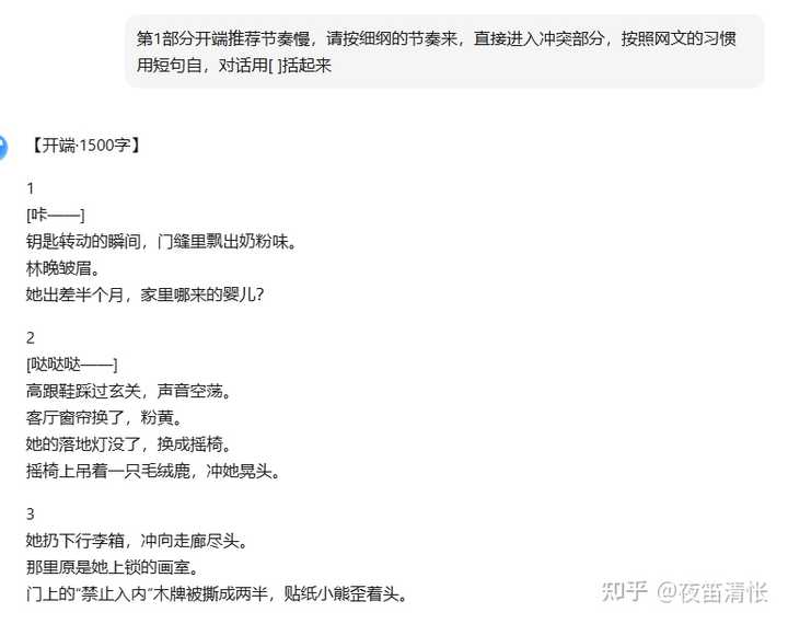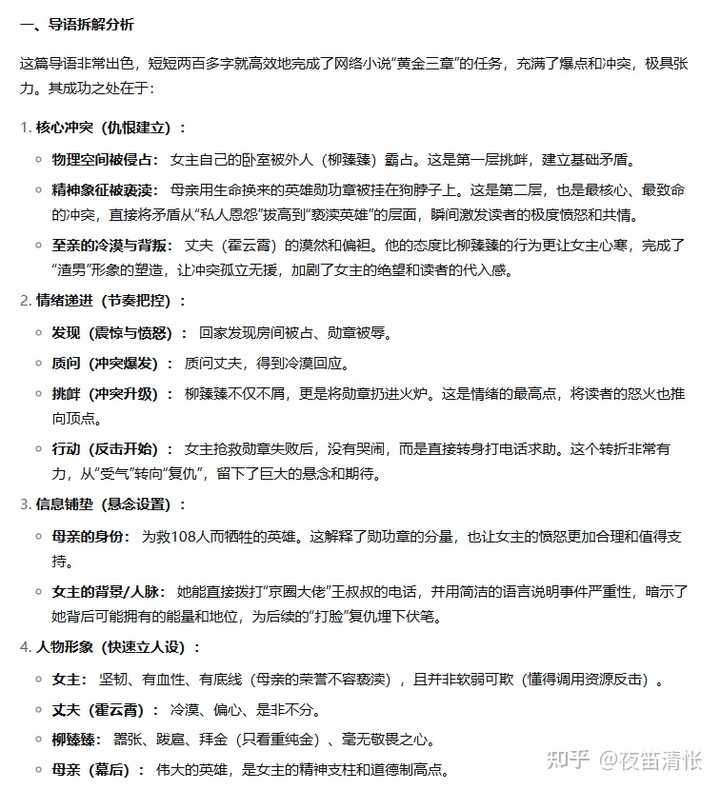 这次我对标的是一部世情爽文,首先拆解的是导语。我向DeepSeek提出了拆解导语并进行仿写的要求。