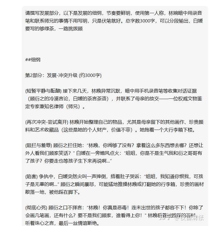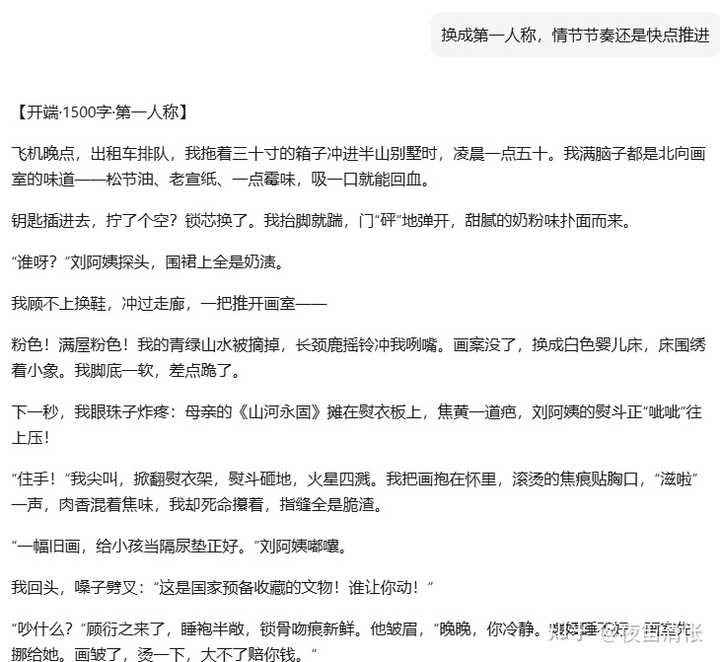 无论是DeepSeek还是Kimi,第一次写出的故事都是严格遵循开端、发展、高潮和结局的结构,这一核心框架非常出色,但问题在于叙述过于平铺直叙,导致故事显得平淡。开端不够吸引,发展节奏慢,高潮部分不够刺激,只有结尾让我比较满意,主角成功逆袭。