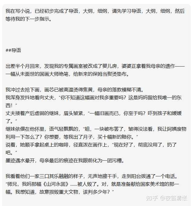 我将新故事的核心信息输入Kimi,并提供了新的导语、大纲和细纲。由于内容较长,截取了开头部分的截图。