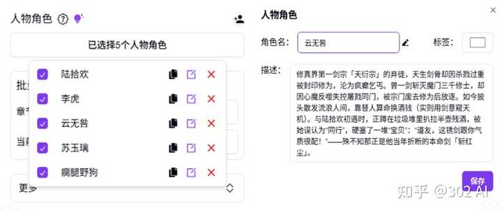 - 当第一章节写作完成后,AI 会自动提取出该章节中出现的人物角色,用户可以对这些角色的设定进行自定义编辑。