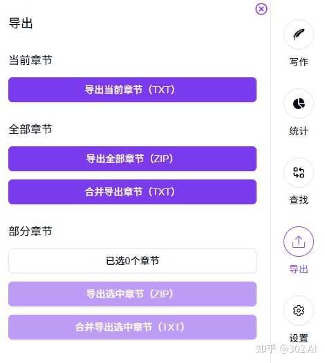 章节完成后,您可以选择文件格式将作品导出(支持整体导出和按章节导出,方便分享)。