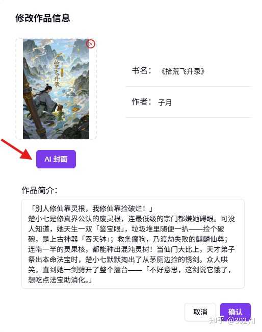 - 首先,您需要创建一个新作品,在这里输入您构思的书名和故事简介,AI 会根据书名自动生成小说封面,这样一个新作品就创建完成了。