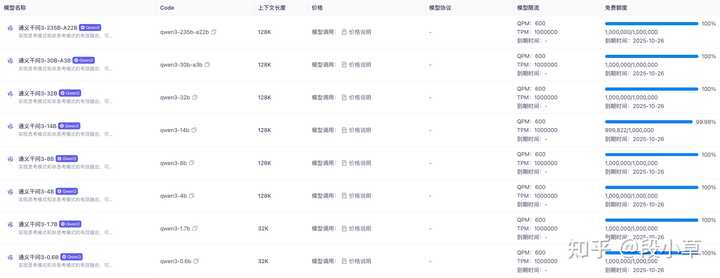 在阿里云百炼上,Qwen3的每款模型均提供100万tokens的免费体验额度: