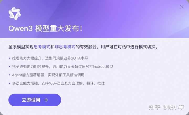 此次Qwen3将思考和非思考功能整合在一起,全系列模型均支持思考模式,使用者可以灵活控制思考的开关。