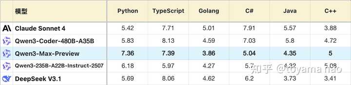 Max在编程能力上的提升主要源于指令遵循能力的优化,其基础异常率明显低于235B,而经过修正后的异常率甚至低于专门针对编程的Coder模型。语言分布在235B的基础上略有波动。再加上前文提到的百炼平台带来的更高tps,Max的平均响应时间低至49秒,接近Coder模型,使得Max在整体编程实用性上表现突出。考虑到Max目前仍处于预览阶段,待其正式发布后,超过Coder模型的可能性也并非遥不可及。