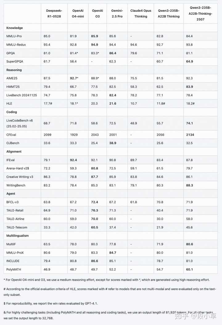 - 周五:Qwen3-235B思考模式(Thinking)上线,再次刷新SOTA分数,成为当今全球最强的开源推理模型,性能与闭源的Gemini 2.5 Pro相抗衡。