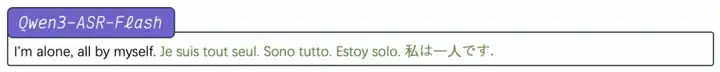 Qwen3-ASR-Flash 单一模型能够精准转换多种语言、方言和口音: