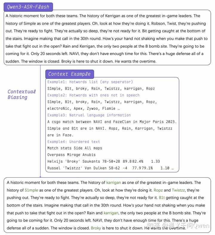 为了获得个性化的 ASR 结果,用户可以提供任意格式的背景文本,Qwen3-ASR-Flash 无需对上下文信息进行格式预处理。