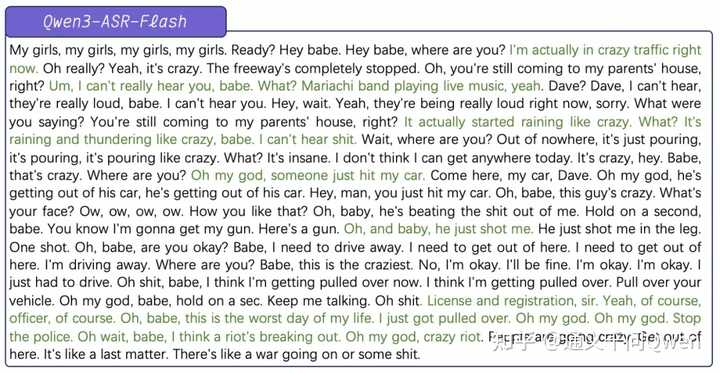 Qwen3-ASR-Flash 单模型在单次推理中,示例 2 以外的情况未配置任何背景信息。