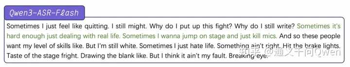 Qwen3-ASR-Flash 展现了卓越的语音识别性能,具备高精度和强鲁棒性,支持 11 种语言和多种方言。特别之处在于,它允许用户以任意格式提供文本上下文,从而获得个性化的 ASR 结果,并且还能够识别歌曲。