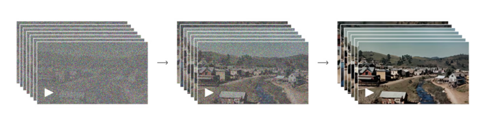 进一步地,Sora 通过扩散过程将数据令牌的概率分布转化为高斯分布,再通过逆变换将隐空间中的白噪声令牌转换为隐数据令牌。对于某些标题过于简短且缺乏字幕的视频,Sora 还采用了Dall- E 的重新标题技术。