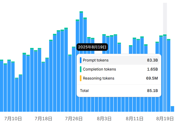 实际上,若我们观察所谓的混合模型 Claude Sonnet 4,会发现 Reasoning tokens 的占比极为有限。