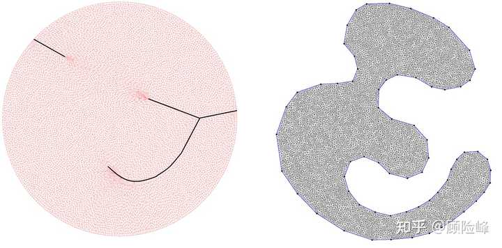 扩散模型的缺陷可以通过基于几何方法的最优传输模型克服。如图 4 所示,假设我们计算从圆盘内部均匀分布到右侧海马形状区域内的均匀分布的最优传输映射,根据相应的 Brenier 定理,该映射由某个凸势能函数的梯度映射给出。这一势能函数满足蒙日 - 安培方程,其连续、非可导的集合投影到圆盘区域的奇异集合(黑色曲线),规则点映射到目标区域的规则点,而奇异集合映射到目标区域的边界(每个奇异点同时映射到左右两个边界点)。当我们跨越奇异集合时,意味着跨越了两个稳恒态,必然发生临界(灾变)事件,即物理事件的稳恒态被打破。由此可见,精准识别传输映射的奇异集合、探测临界(灾变)状态,对于物理世界建模至关重要。