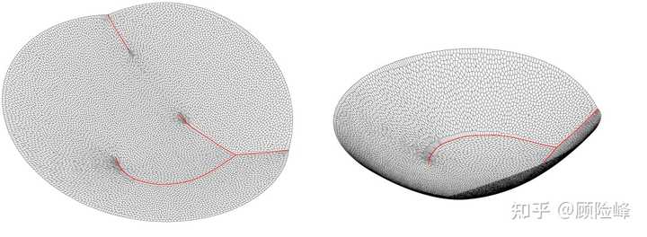 扩散模型的缺陷可以通过基于几何方法的最优传输模型克服。如图 4 所示,假设我们计算从圆盘内部均匀分布到右侧海马形状区域内的均匀分布的最优传输映射,根据相应的 Brenier 定理,该映射由某个凸势能函数的梯度映射给出。这一势能函数满足蒙日 - 安培方程,其连续、非可导的集合投影到圆盘区域的奇异集合(黑色曲线),规则点映射到目标区域的规则点,而奇异集合映射到目标区域的边界(每个奇异点同时映射到左右两个边界点)。当我们跨越奇异集合时,意味着跨越了两个稳恒态,必然发生临界(灾变)事件,即物理事件的稳恒态被打破。由此可见,精准识别传输映射的奇异集合、探测临界(灾变)状态,对于物理世界建模至关重要。