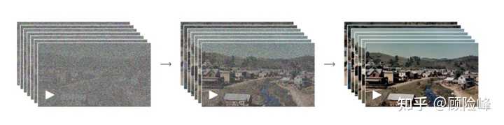 如图 2 所示,Sora 在隐空间通过扩散过程(郎之万动力系统,逐渐为每个令牌添加噪声)将数据令牌的概率分布转化为高斯分布,并通过逆变换将隐空间中的白噪声令牌转换为隐数据令牌。