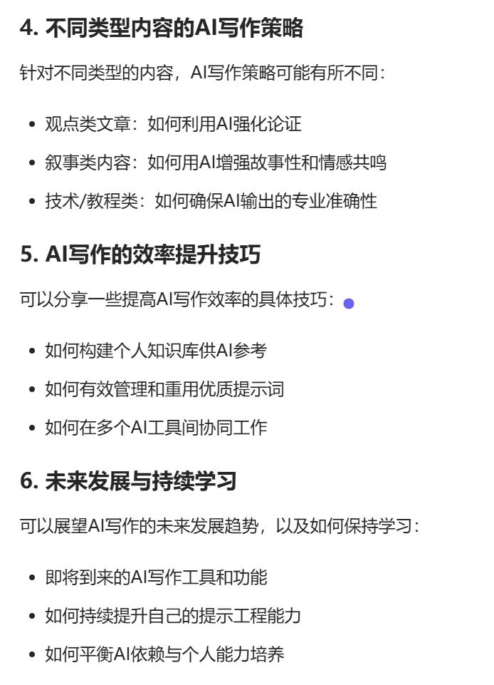 下图展示了我让 AI 对这篇文章大纲的补充内容。