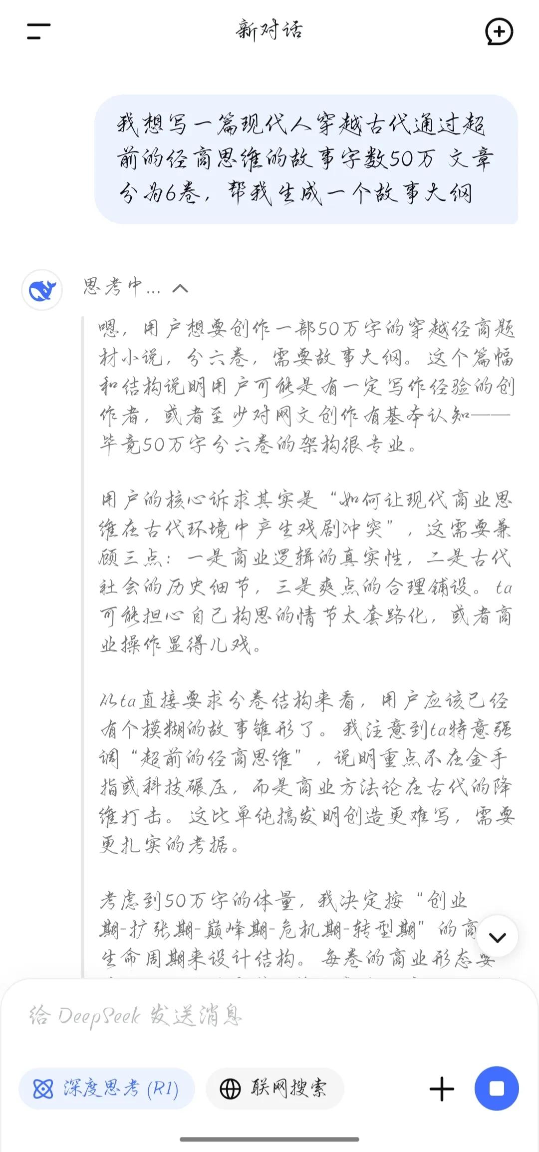 首先,以 deepseek 为例,确保你已经开启深度思考 R1。