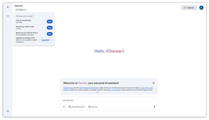 耐心等待页面加载,若出现 AI 对话框,即表示我们成功开通了 Gemini。