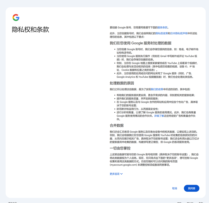 最后同意协议条款后,即可完成谷歌账户的创建。