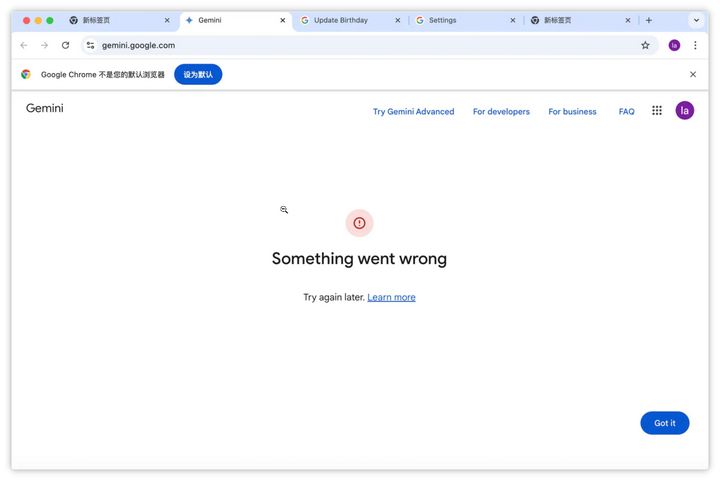 最近有不少朋友在尝试使用谷歌 Gemini 时,打开官网却遭遇了“Something went wrong Try again later.”的提示。这种情况该如何处理呢?