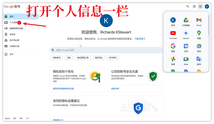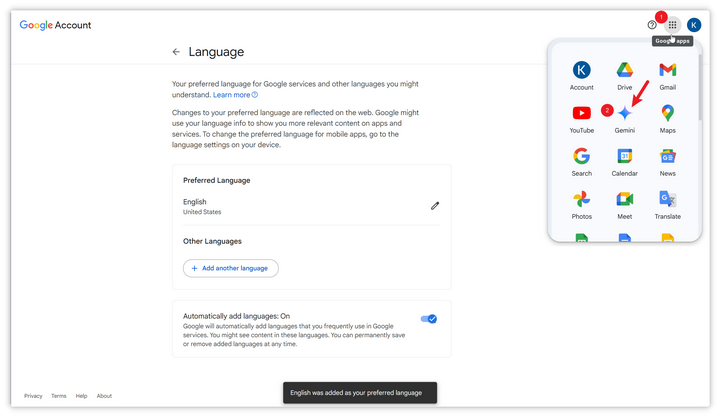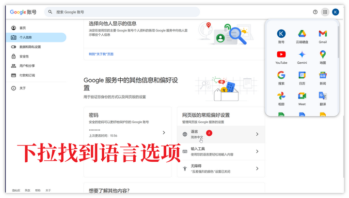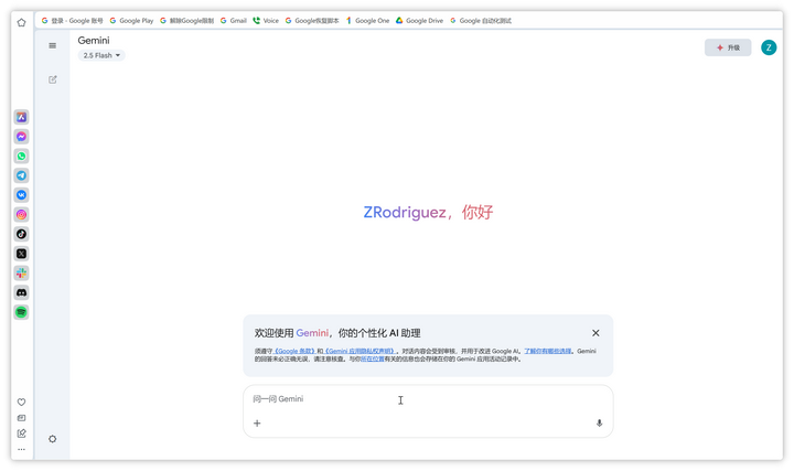 调整完成后,点击右上角的谷歌全家桶 logo,找到 Gemini 进行尝试。