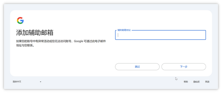 这一步需要填写辅助邮箱,有人说填写国内邮箱会被标记,但这个说法并不准确。谷歌对辅助邮箱没有严格要求,确保填写真实邮箱以证明自己是真人即可。