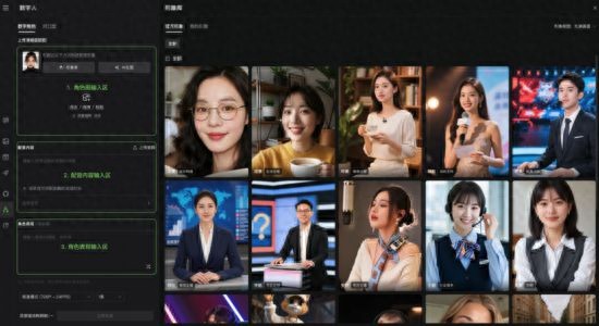 此外,为了实现“开箱即用”的优质体验,可灵 AI 还提供了一站式解决方案。用户不仅可以上传自己的素材,还能使用内置的官方形象库、AI 生图功能以及近百种 TTS 音色,轻松完成从角色创建到配音的全流程。