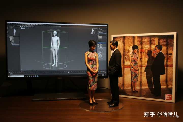 提示:利用 Nano Banana 模型,我制作了一个插画角色的 1 / 7 比例商业手办,采用写实的风格与环境,力求保留尽可能多的细节与动态。该手办被安置在电脑桌上,底座为无文字的圆形透明亚克力。ZBrush 建模过程在电脑屏幕上展现,旁边则放置了一款万代风格的玩具盒,上面印有原图像。