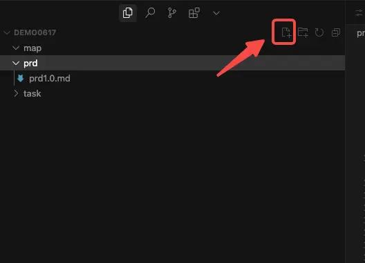 配置完系统提示词和任务追踪系统提示词后,在左侧文件夹管理区域新建三个文件夹,分别是prd(填写prd文档)、task(填写执行任务文档)、xxx(填写项目名称)。