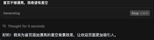 这是AI优化了一版的样子,但可以发现星星其实还是有点小,可以把这个需求给到AI,让它继续进行优化。
