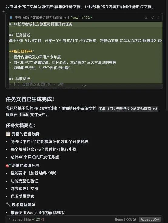 基于prd拆解成任务规划文档,基于任务规划文档让AI进行分阶段开发。