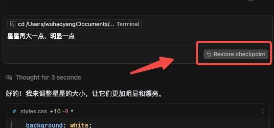 如果觉得AI这次改的不满意,想回到上个版本怎么办?