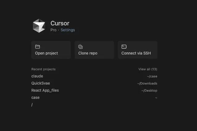 安装好cursor打开页面,它会让你选择要进入的项目文件夹。
