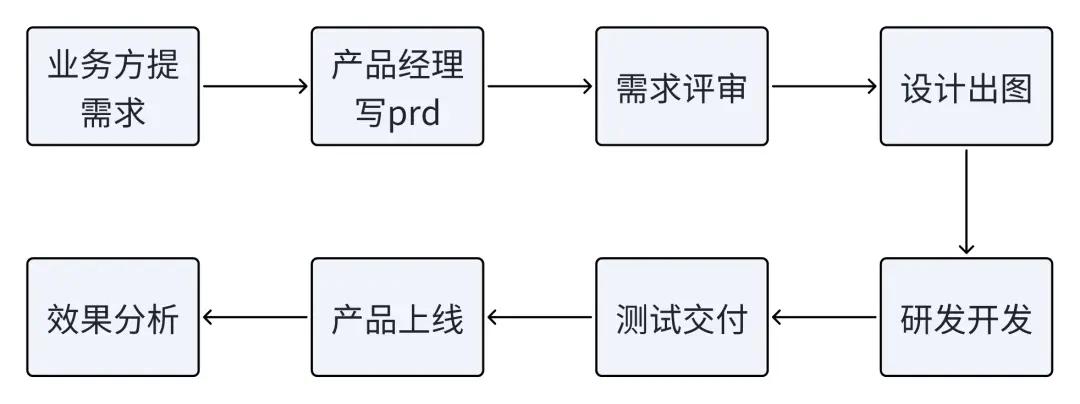 - 效果分析:产品上线后分析是否符合当初预期,有无效果。